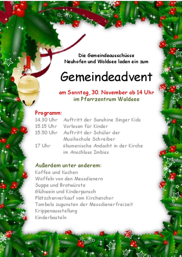 Mittwoch, 05.11.2025 Uhrzeit: 09:00 - 09:45 W-PZ Chorraum, Waldsee